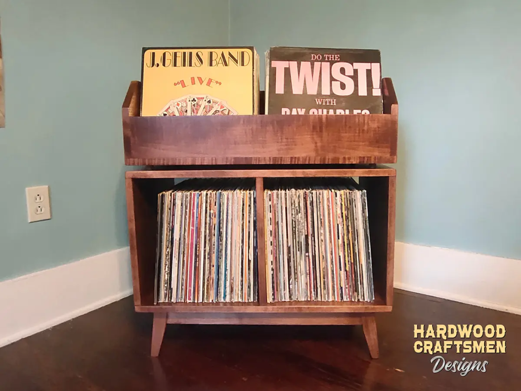 A dowel & mortise and tenon joint connects two pieces of the hardwood cabinet. Woodworkers around the world have used it for thousands of years to join pieces of wood. Dowel & mortise and tenon joints are strong and stable joints that we at Hardwood Craftsmen utilize to ensure a most stable construction for your record collection The mortise and tenon joint also gives an attractive look.