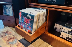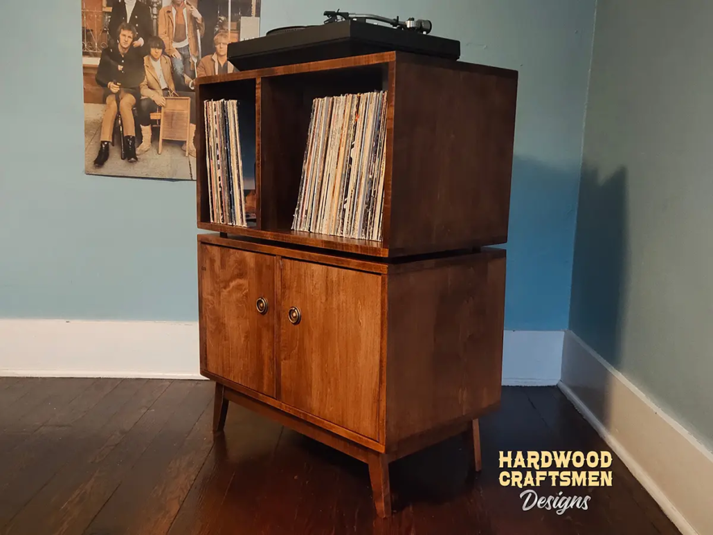 A dowel & mortise and tenon joint connects two pieces of the hardwood cabinet. Woodworkers around the world have used it for thousands of years to join pieces of wood. Dowel & mortise and tenon joints are strong and stable joints that we at Hardwood Craftsmen utilize to ensure a most stable construction for your record collection The mortise and tenon joint also gives an attractive look.