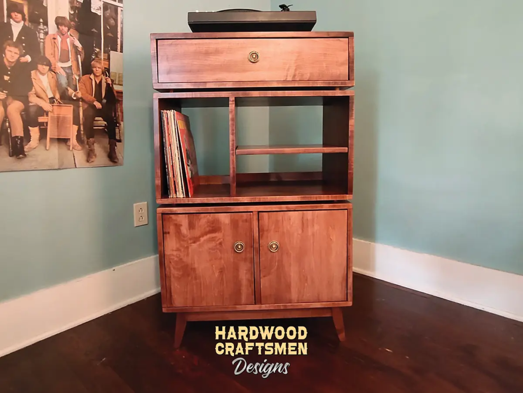 Shop popular record player stand & vinyl storage handcrafted by Hardwood Craftsmen, 100% SOLID Hardwoods, Made in the USA, Guaranteed LOWEST Prices