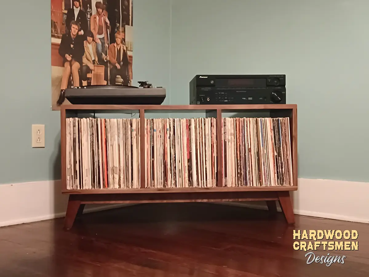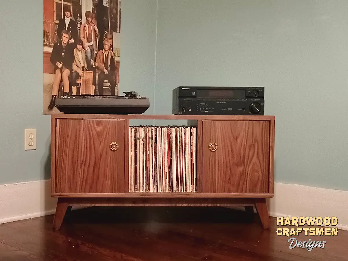 A mortise and tenon joint connects two pieces of the hardwood cabinet. Woodworkers around the world have used it for thousands of years to join pieces of wood. Mortise and tenon joints are strong and stable joints that we at Hardwood Craftsmen utilize to ensure a most stable construction for your record collection The mortise and tenon joint also gives an attractive look.