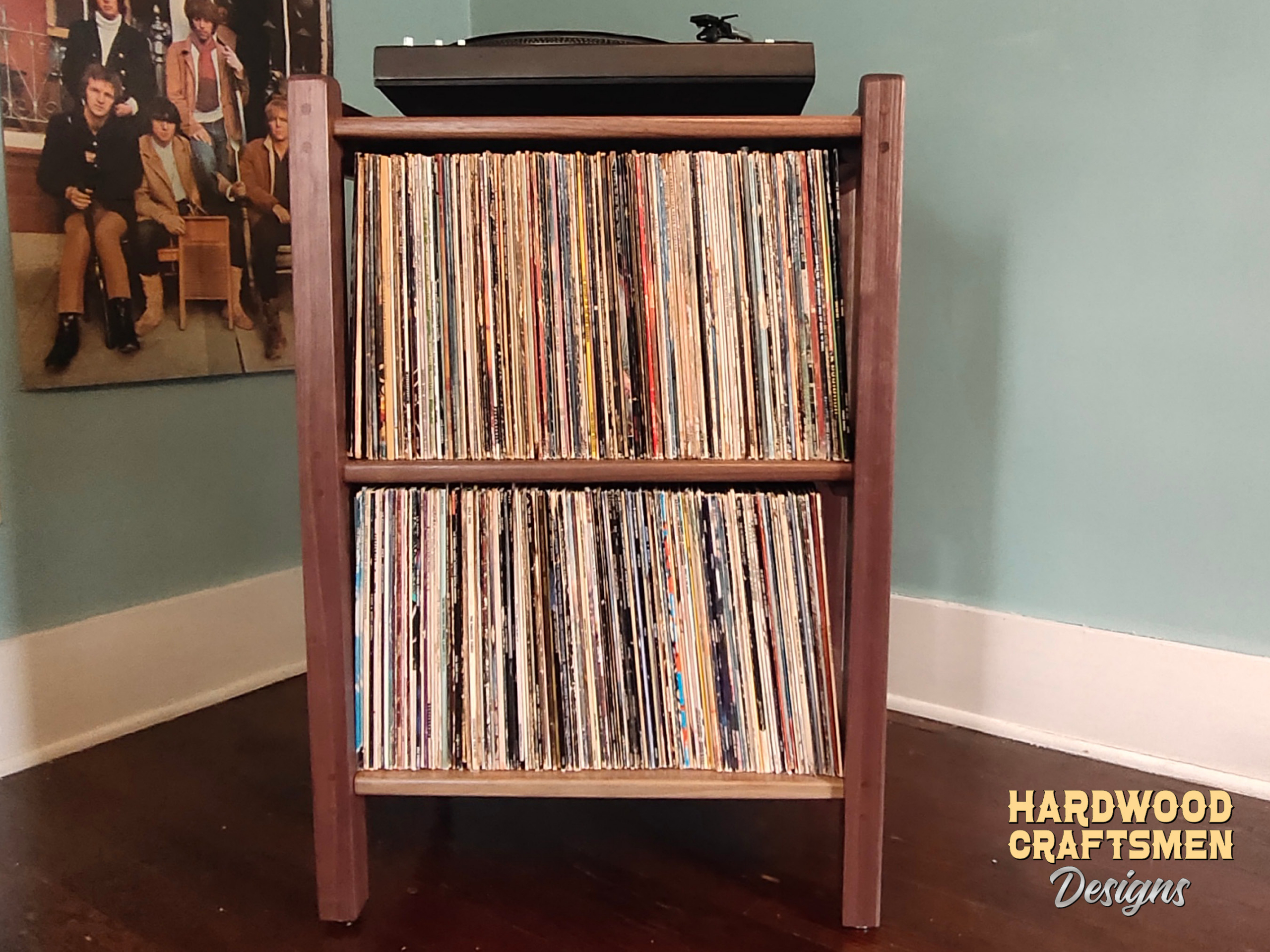 Handcrafted walnut record player stand, solid wood vinyl furniture, turntable storage rack – Made in the USA & Built to Last
