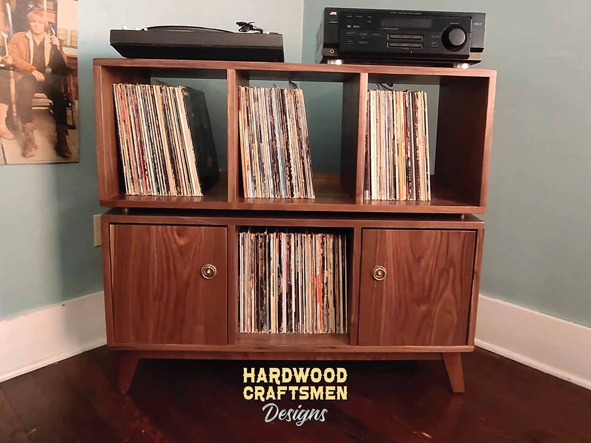Handcrafted record storage with doors, custom turntable stand, vinyl player stands 3-tier – Made in the USA & Built to Last