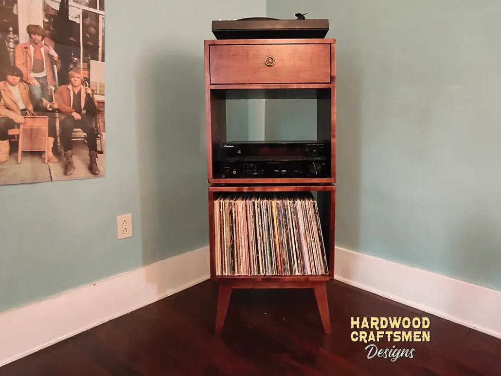 Solid Wood Record Cabinets, Turntable Shelf & LP Stand, Amish-Built Vinyl Rack