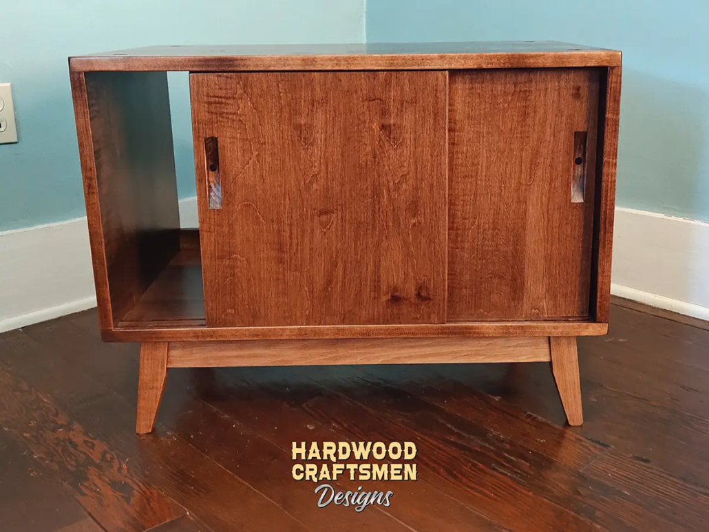 Amish-Built Record Cabinet w/ Doors, Vinyl Storage Medium, MCM Record Player Stands