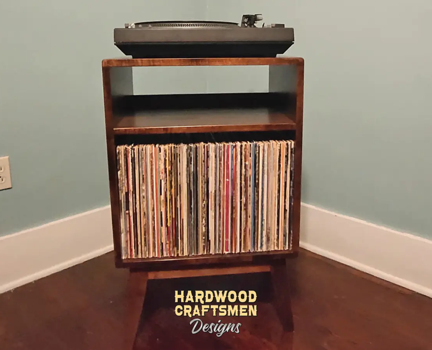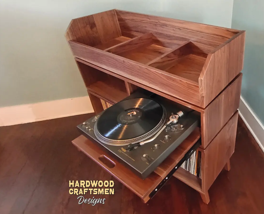 Solid Walnut Record Player Stand, LP Cabinet Storage, Turntable Storage Stand