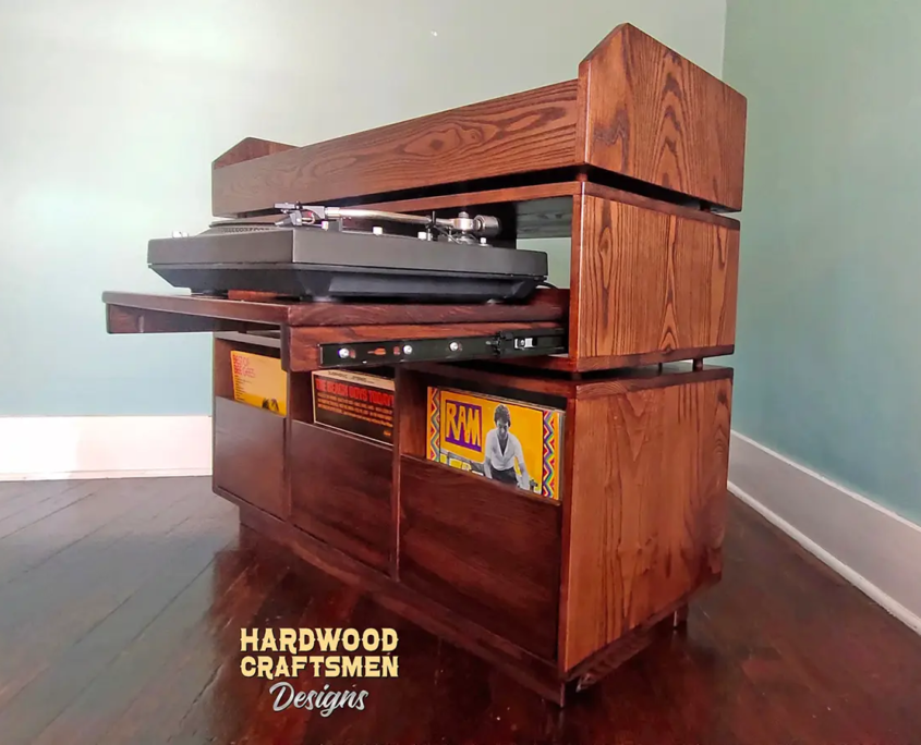 Dovetail 3 x 2.8 Record Player Stand, Vinyl Record Storage, Pull Out Drawer Shelves
