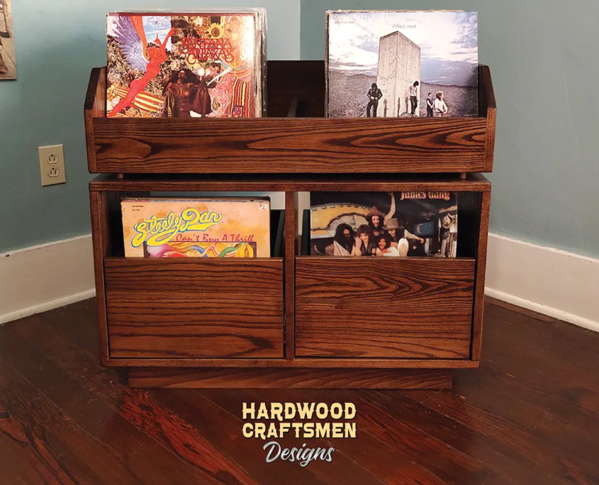 Shop vinyl storage two tier selections handcrafted by Hardwood Craftsmen, 100% SOLID Hardwoods, Made in the USA, Guaranteed LOWEST Prices