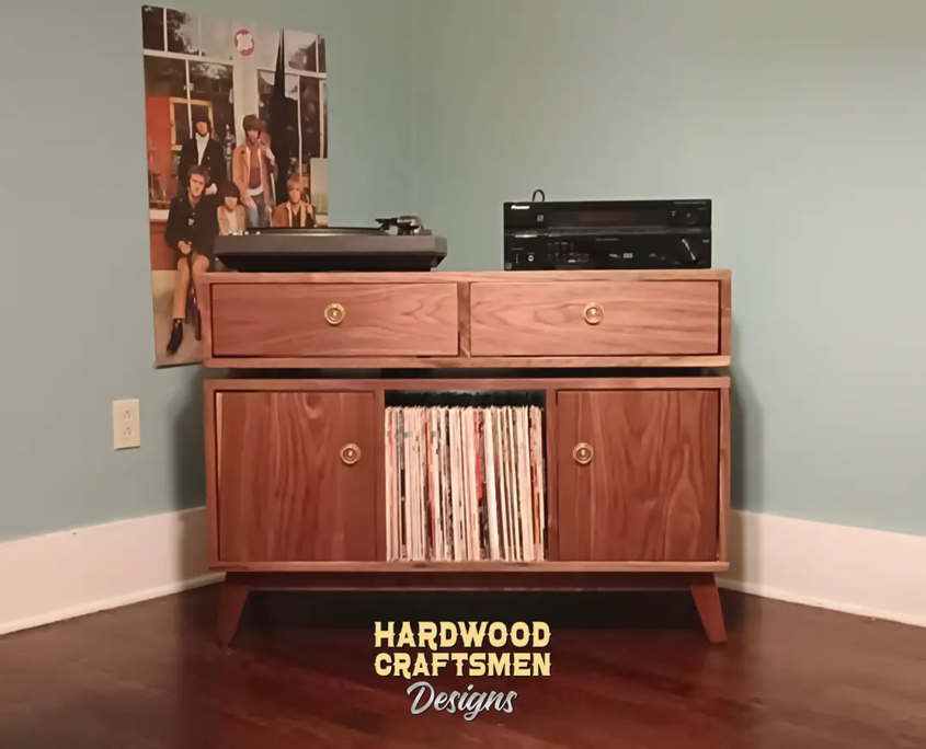 Vinyl Cabinet with Drawers, Custom Record Player Stand, 2 Tier LP Storage Cabinets